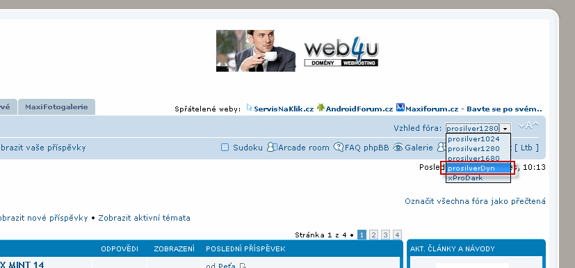tady a některým uživatelům už nějaký ten pátek slibováno, přidali jsme do fóra úšpěšně nový styl resp. novou modifikaci původního PROSILVER stylu. Pracovně jsem ho pojmenoval ProsilverDyn coby dynamický prosilver.