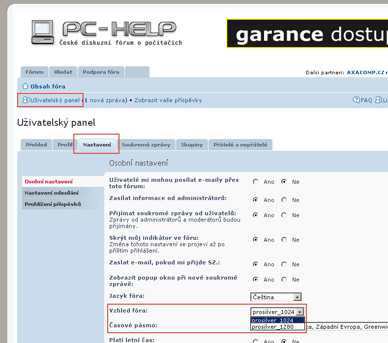 S radostí oznamuji, že PC-HELP má počínaje dnešním dnem "nový" styl, který je o poznání širší (200px). Naleznete ho v nastavení ve svém uživatelském profilu pod názvem prosilver_1280. Původní styl zůstává rovněž - je možné si vybrat - je to vlastně vůbec poprvé, co bude mít PC-HELP 2 styly