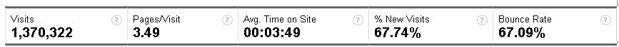 Pro vysvětlení: Visits = celkový počet všech návštěv, Pages/Visit= průměrný poč. zobrazených stran na 1 návštěvu, Avg. Time on Site= průměrný čas strávený na fóru, % New Visits= % nových návštěv, Bounce Rate= % tzv. bleskových návštěv (při kterých byla zobrazena pouze 1 stránka)