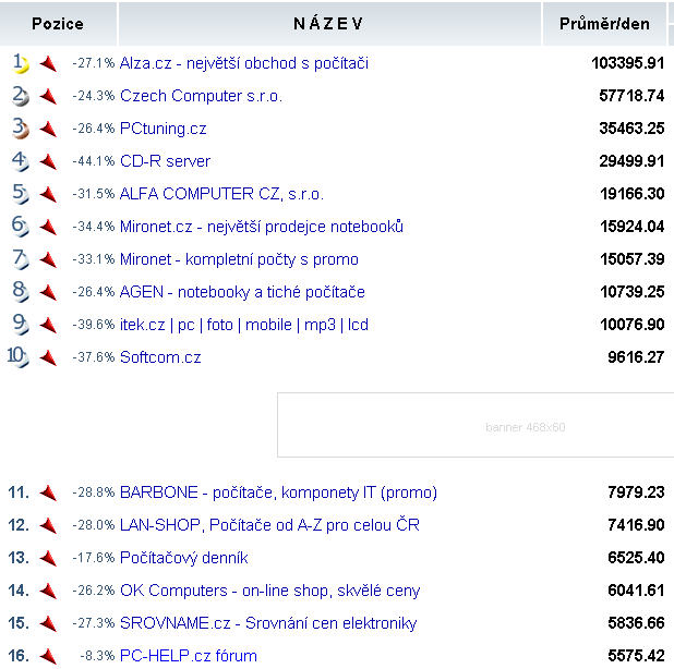 Dosáhli jsme krásného 16. místa v sekci Hardware, ze všech stránek v ČR jsme v první 500 ;-)