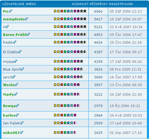 Níže shlédněte TOP 15 uživatelů našeho fóra – tedy TOP 15 co do počtu příspěvků, samozřejmě gratulujeme.