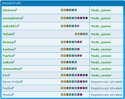 Snad pro úplnost uvádím vysvětlení, proč jsou někteří z našich členů týmu modře. Vzhledem k nedostatku času pro moderování se rozhodli opustit moderátorskou funkci. I přesto budou dále členy pc-help teamu (zařazeni ve VIP skupině).