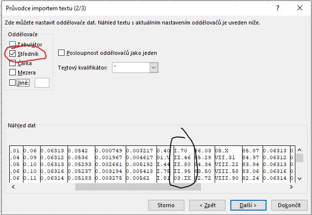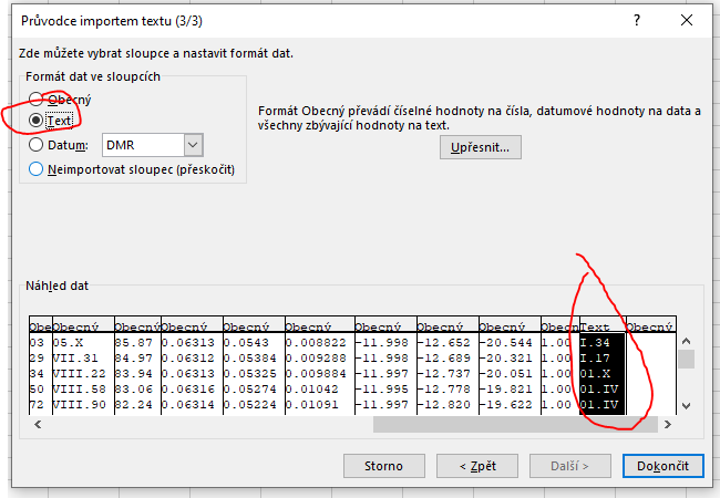 Mám textový soubor s oddělovači Microsoft Excelu (.csv). Když ho otevřu normálně excelem, tak místo čísel mám tyhle divné čísla zmixované římskými číslicemi (viz. příloha). Potřeboval bych, aby se to zkonvertovalo na číslo. Snažil jsem se i v novém excelu vložit data z textu a měnil jsem tam z obecný na text, ale bez úspěchu.