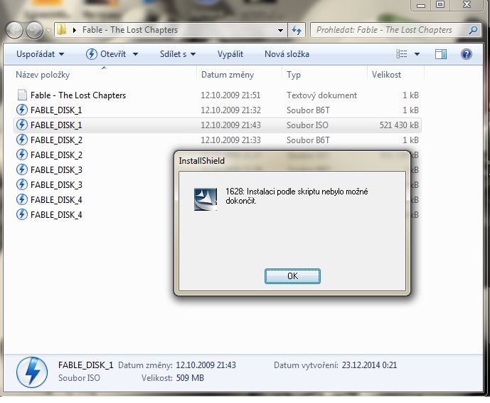 Ahoj, mám problém s Hrou Fable, chci si jí nainstalovat, mám originál CD i staženou instalačku, ale obojí mi při instalaci hlásí problém 1628 Instalaci podle scriptu nebylo možné dokončit. Před touhle chybou mi to hlásilo jinou chybu 1607 unable to install installshield scripting runtime. Ale v češtině. Mám win7. Nevěděl by někdo co s tím? Dám sem i screen shoty. Díky