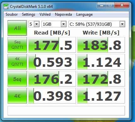 Můj příspěvek je asi nečitelný tak proto tehle problem si stahni i tohle http://osdn.jp/projects/crystaldiskmark ... rror=jaist a též jsem vlož screen z programu