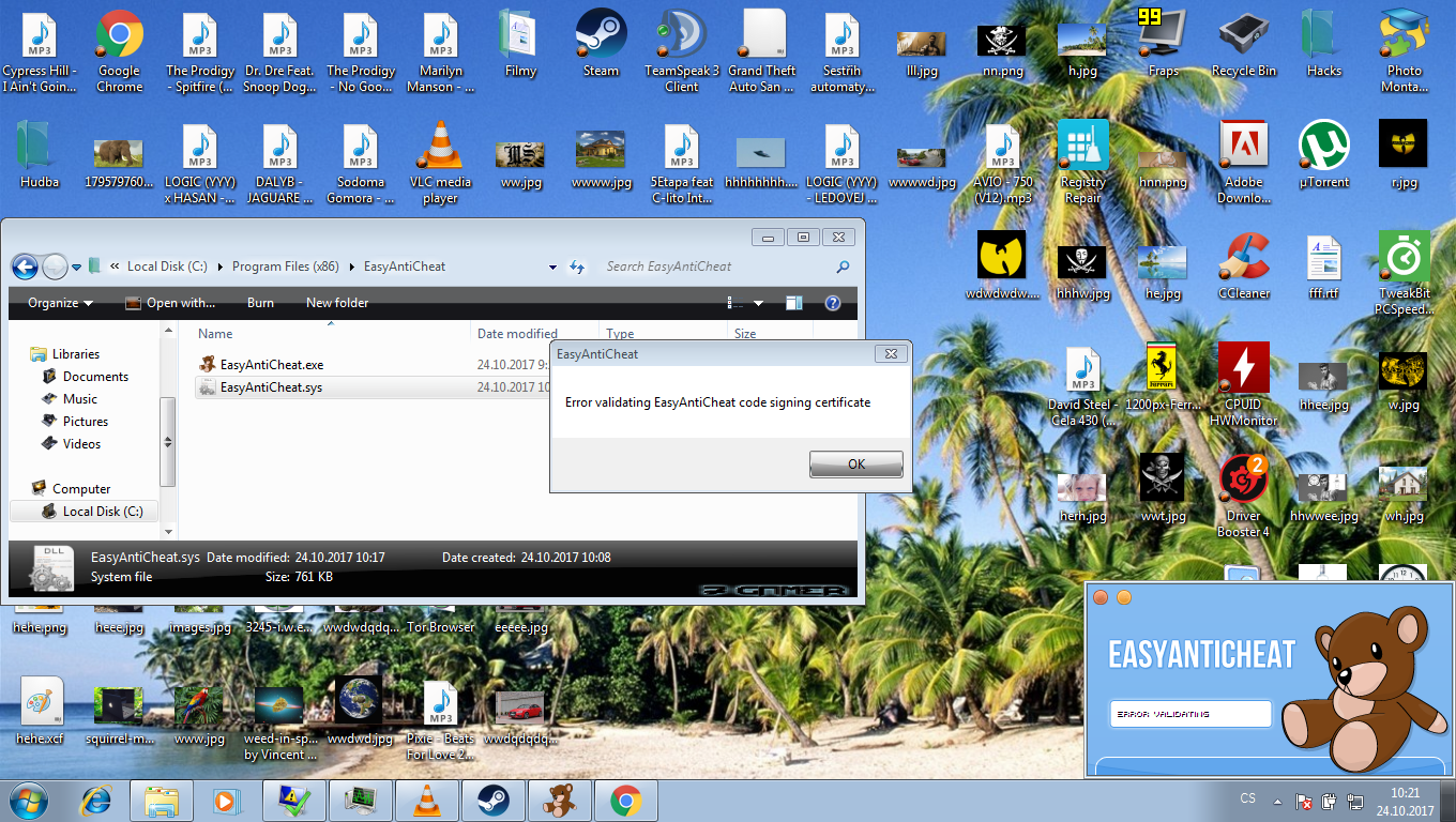 Třeba tam bude nějakej problém s tou složkou Hacks, co máš na ploše :)