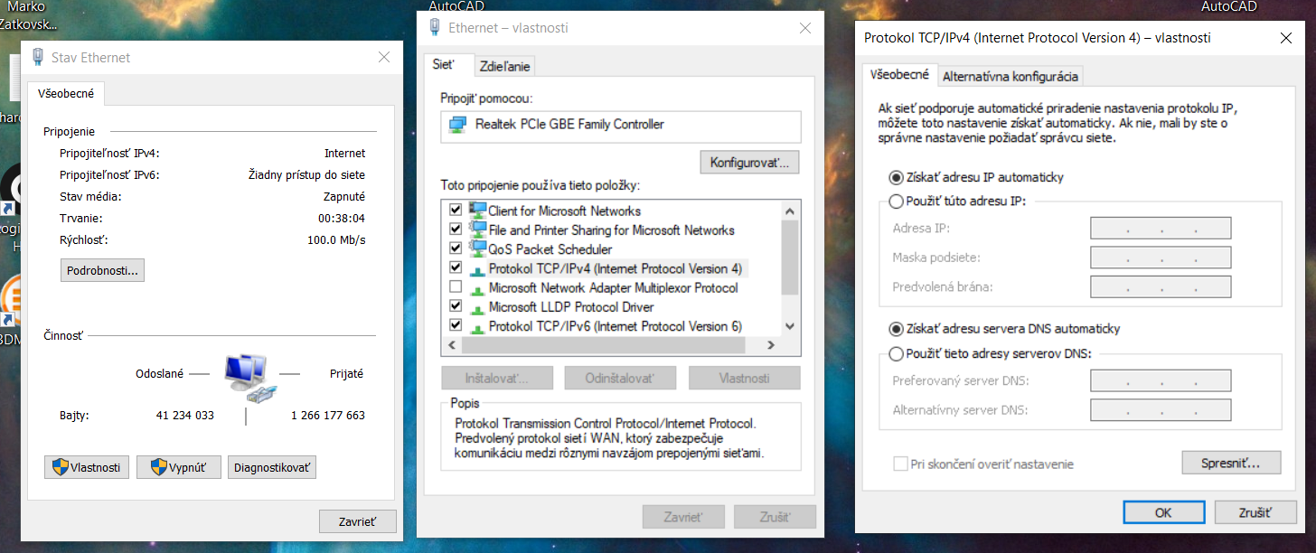 Ethernet adapter Sieťové pripojenie Bluetooth: