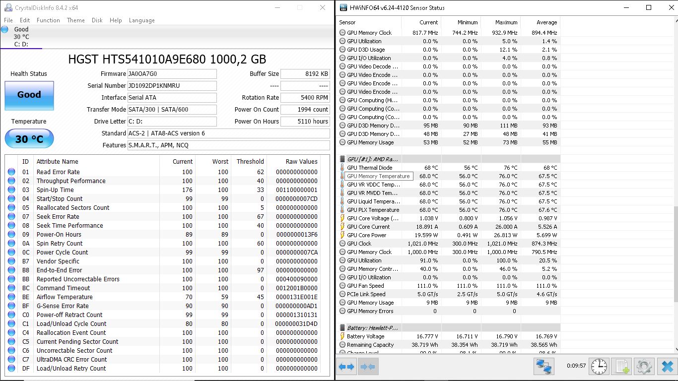nic použitelnýho... CDI roztáhni tak, aby tam byly viditelný všechny spodní položky, kerý překrejvá to HWiNFO, kerý taky komplet roztáhneš, aby tam bylo vidět komplet všechno, momentálně to neukazuje ani jednu teplotu... podotýkám že to HWiNFO potřeba nechat zapnutý počas hraní gdy to blbne a paxem hodit ten screen...