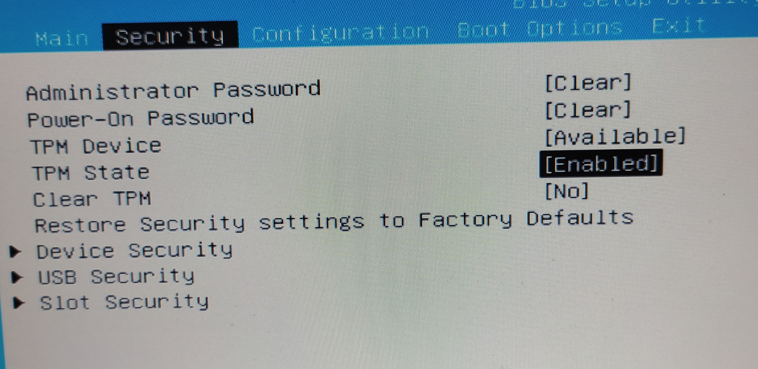 Zapnute TPM nestaci, musi to byt TPM verze 2.0.
