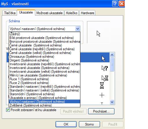 V Ovl.panely-myš-ukazatel-možnosti bys jistě našel potřebný vzhled ukazatele.