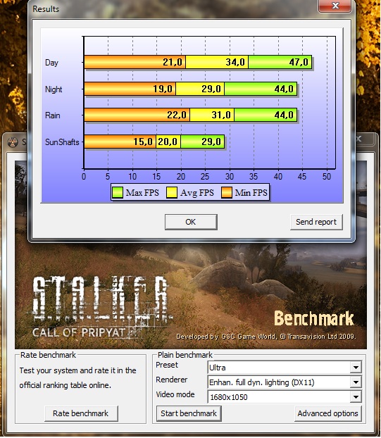 Benchmark STALKERu v tomto nastavení i s výsledky. Bych řekl výborné, ne? Co myslíte? Ovladače 10.2.