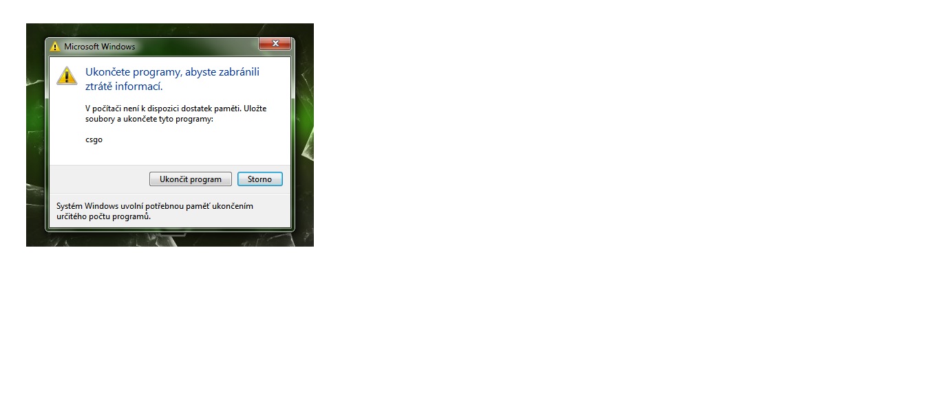 Re: Chyba! V počítači není dostatek paměti - CS:GO