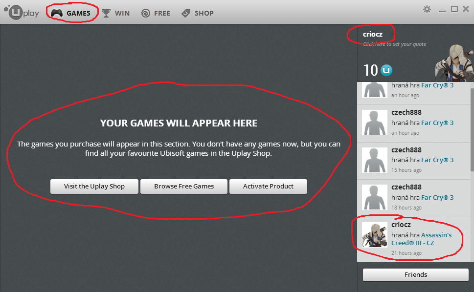 Čau, dneska jsem si chtěl zahrát assassins creed 3 a po přihlášení na Uplay dám hry a žádná tam není