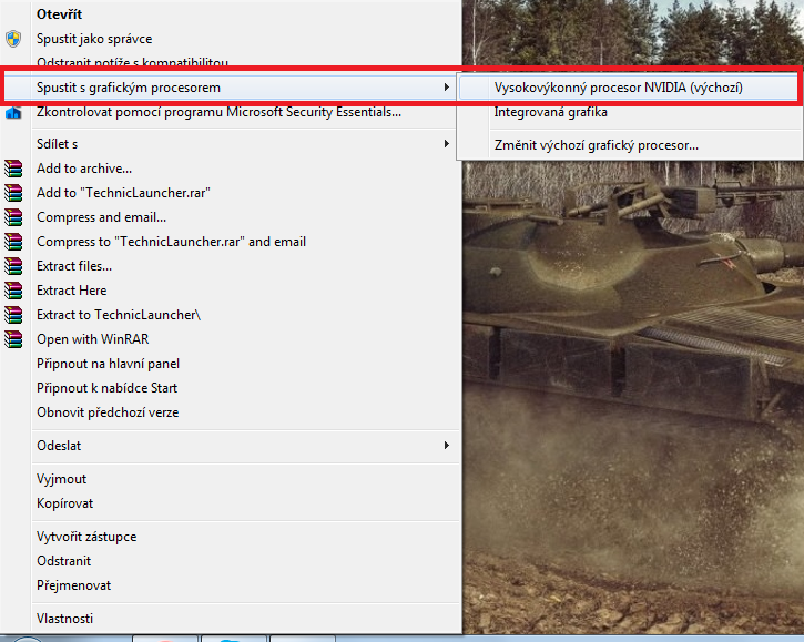 vysokovýkonný procesor nVidia a potvrď. Pak zapni hru a řekni, na kolik FPS běží.
