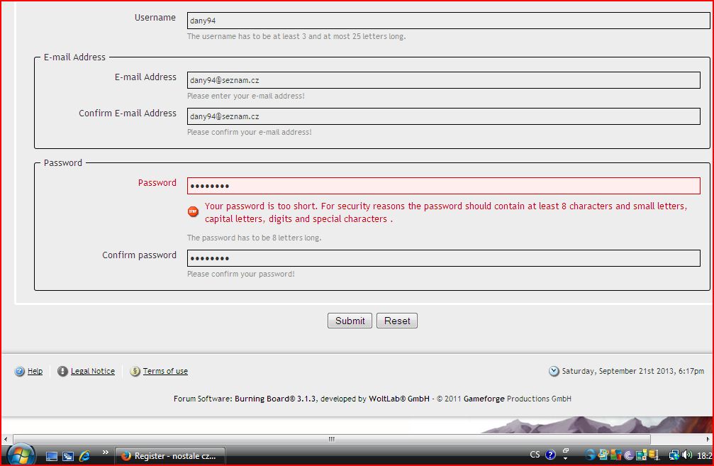 píše mi tam heslo musí být dlouhé 8 znaku a zkoušel jsem zkoro všechno a proste se tam nezaregistruju na to jejich forum :(