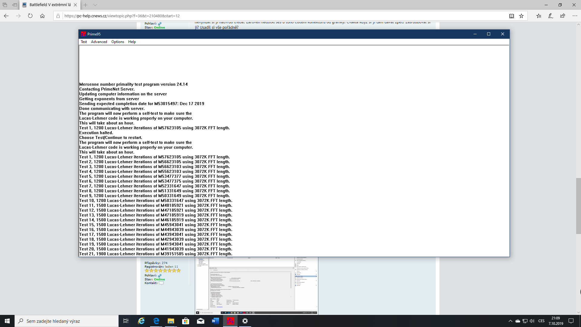 Teď zkouším ten test procesoru a ramek, píše to 1 hodina do konce testu......