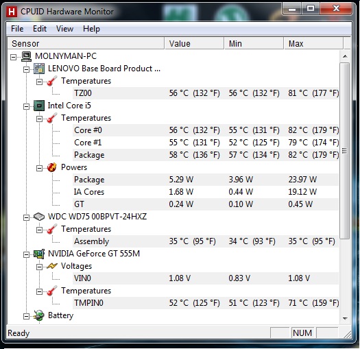 Tak jsem zapnul výkon větráku na vysoký výkon a teploty se změnily takhle. FIFA už mi jela plynule, odpo zkusím náročnější hry.