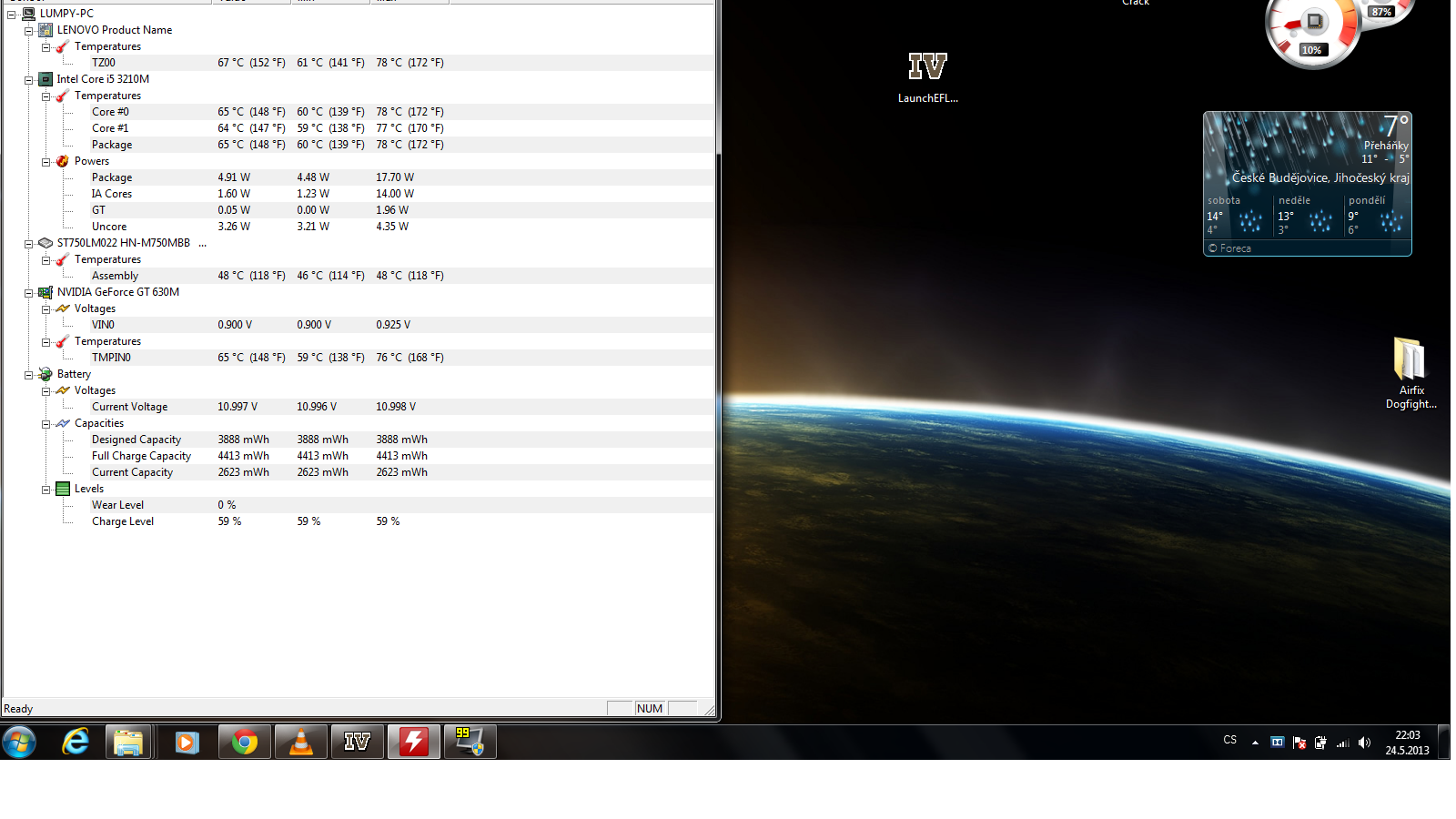 Procesor je Core i5, takže tam se takový teploty dají očekávat a grafika se taky nijak nepřehřívá.