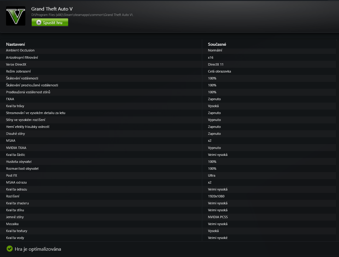 PRo názornost s jakým nastavením to hraju já (optimalizováno přes Experience):