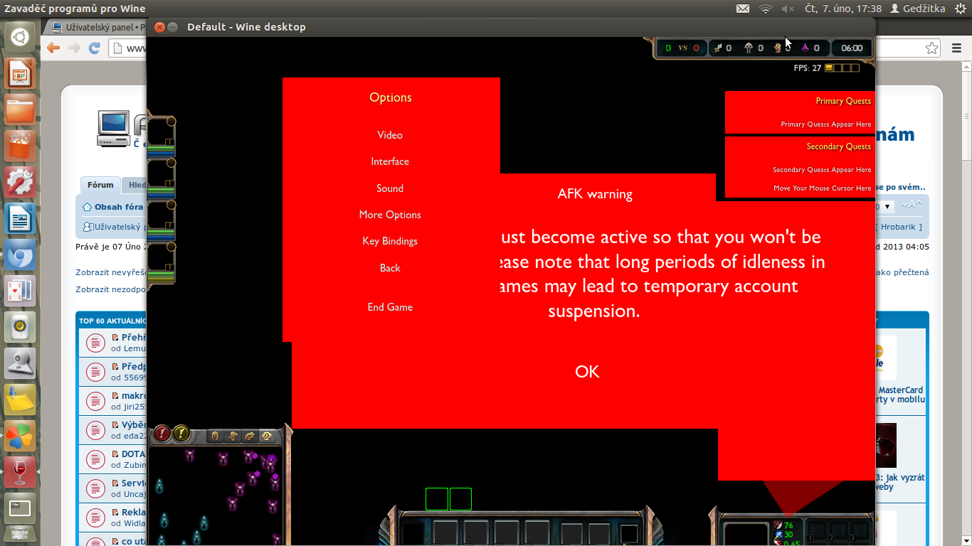 Dobrý den, mám takový problém při hraní hry league of legens (LoL) na linuxu ubuntu. Díval jsem se na internet a mnoho lidí to přes tento operační systém hraje. Pomocí návodů jsem úspěšně vykonal instalaci, která proběhla bez chyb. Úvodní menu a základní login do hry je bezchybný, žádné potíže. V momentě kdy se hra rozběhne přímo za postavy, z černá obrazovka, jakoby nenačetl textury. Jsou pouhé rysy určitých objektů. Nevím, ja ktento problém vyřešit, za jakékoliv rady bych byl velice rád. Hra se spuští přes playonlinux,wine.
