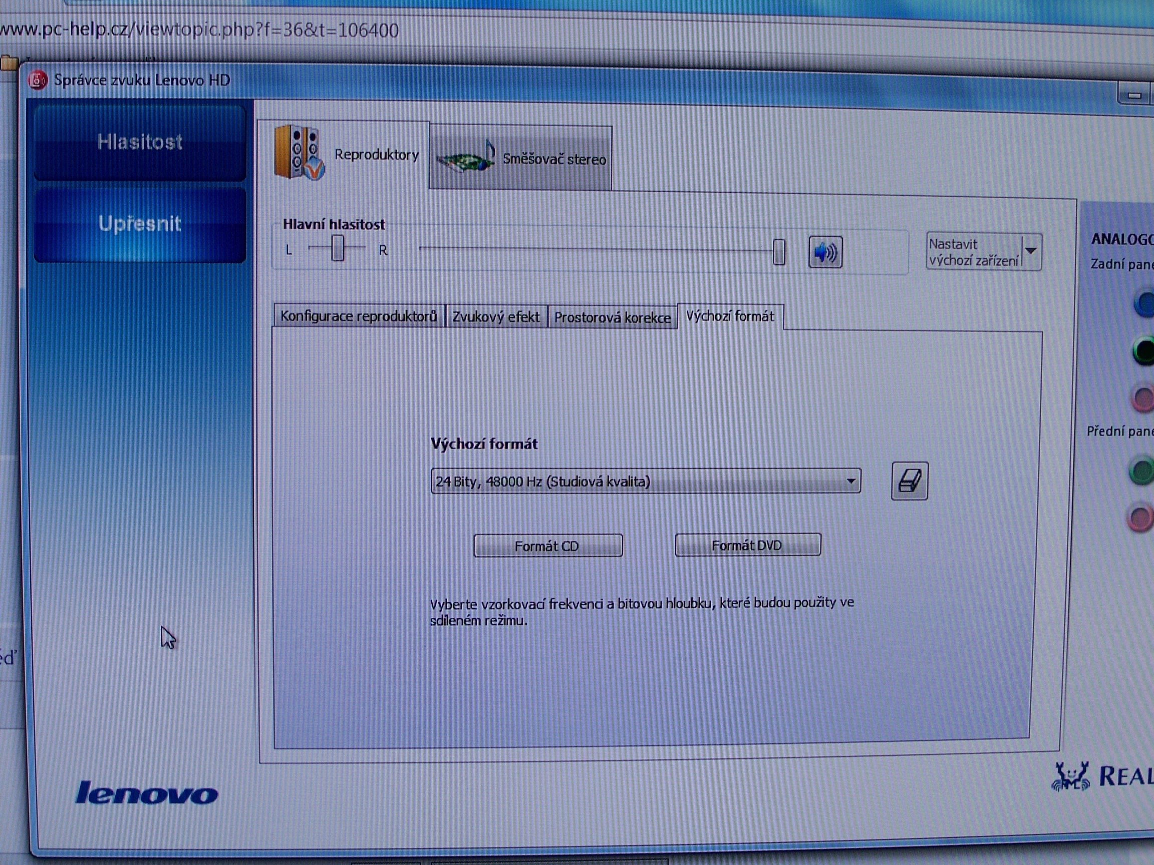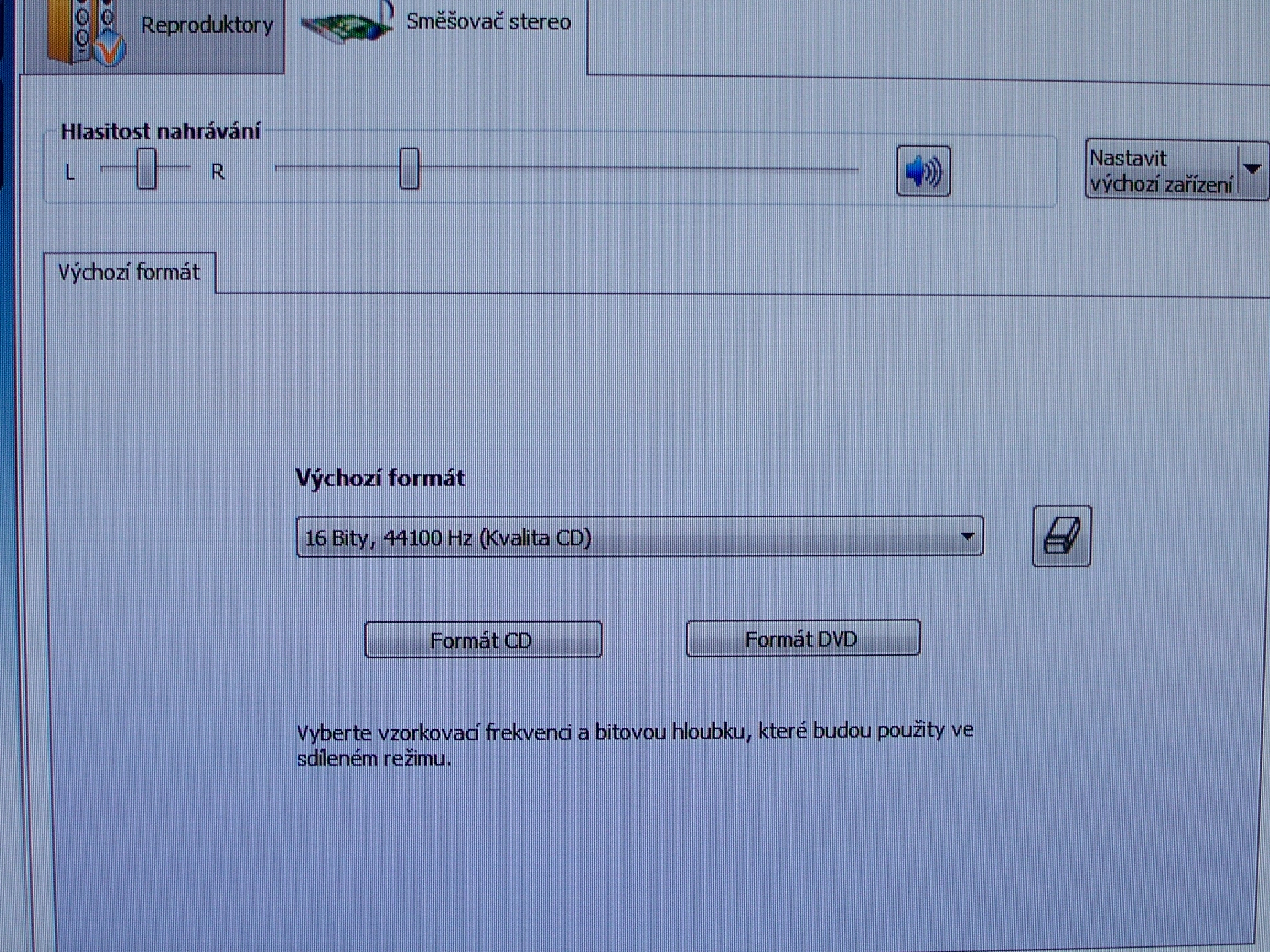 aha.. a pak by to mělo jít jo? No teď jsem byl ve správci zvuku a nemůžu tam nikde najít obnovit výchozí hodnoty nevíš kde to tam je?