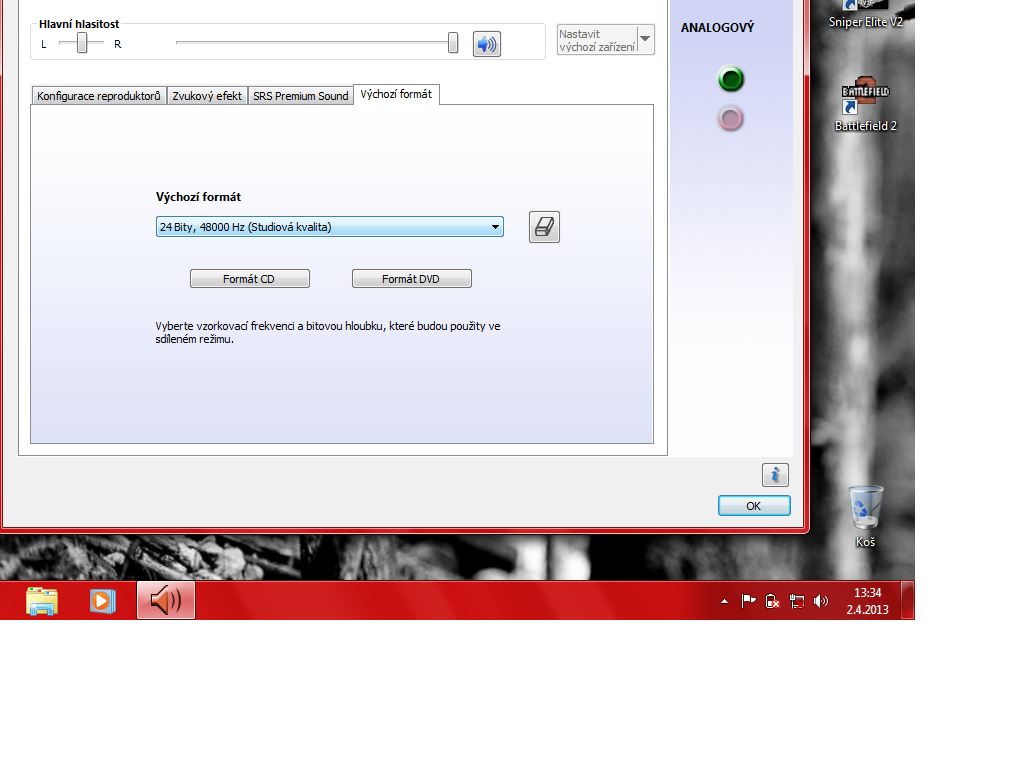 A směšovač stereo vypadá takto? Pokud ano máš vše na výchozí a problém bude při spouštění. nespouštěj hru přes launcher. Jdi do adresáře hry a máš tam možnosti AVPdx90c, AVPdx11 hru spouštěj pomocí avpdx90c.