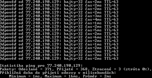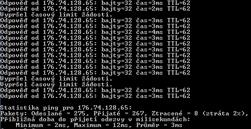 přeruš to měření a zkopíruj sem výsledek (můžeš dát screenshot). Taky místo www.seznam.cz můžeš použít IP toho herního serveru.