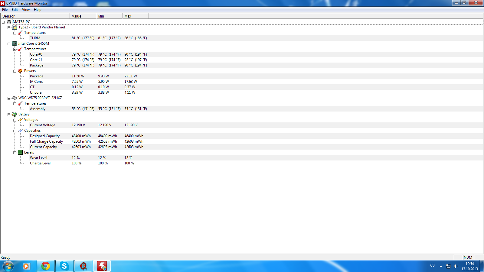 K teplotám řeknu jen, že procesor na tom ještě není tak hrozně, když má limit asi 100°C, ale ten disk je na tom blbě.