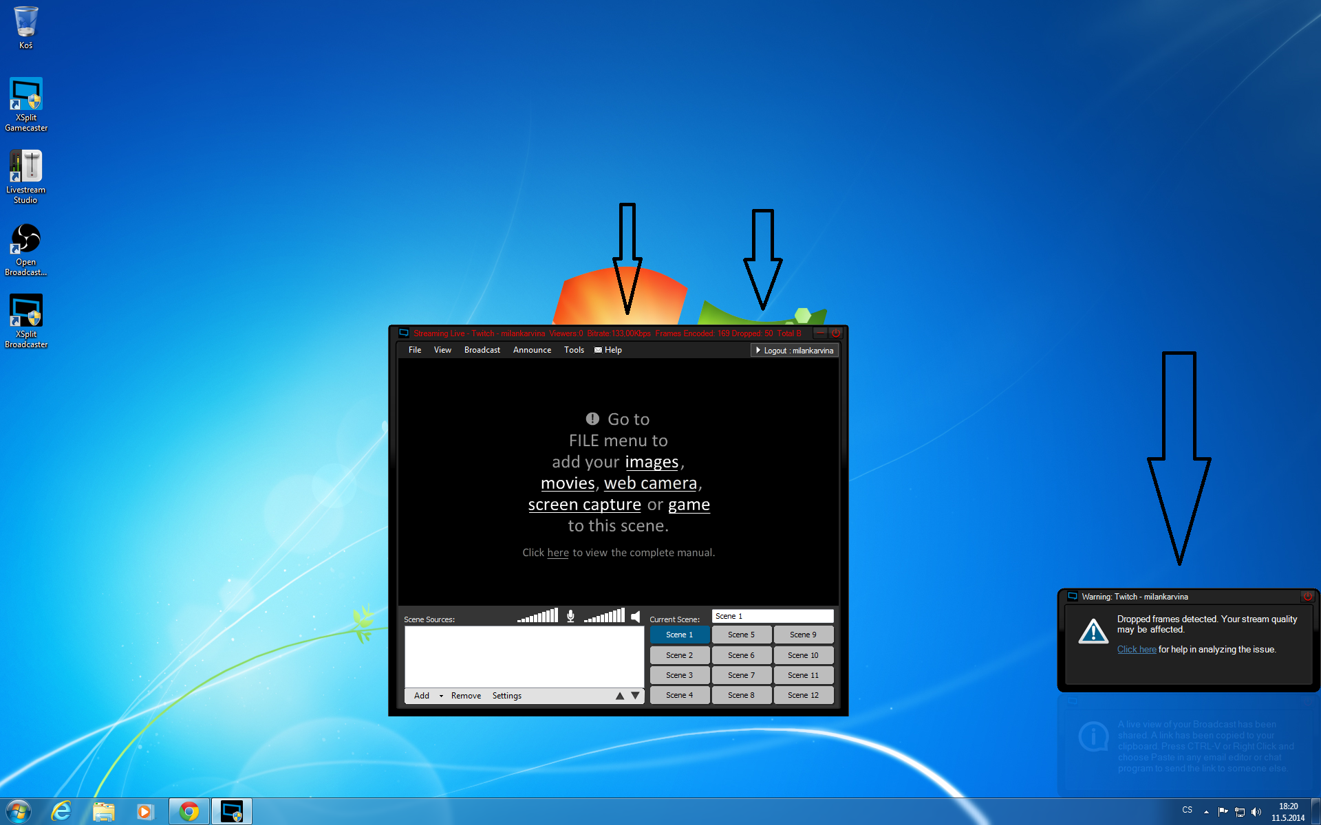 Dneska jsem si nainstaloval 2 streamovací programy, a to XSplit Broadcaster a Open Broadcaster Software. Streamuji na Twitch.tv a z druhého uvedeného programu mi to jede úplně v pohodě a streamuju i 2Mb/s, ale přes XSplit mi to nechce pustit více než nějak 300 kb/s, a to i když mám nastaveno 2000Mb/s. Jak je to možné? A ještě mi to ztrácí snímky. Přikládám screeny.