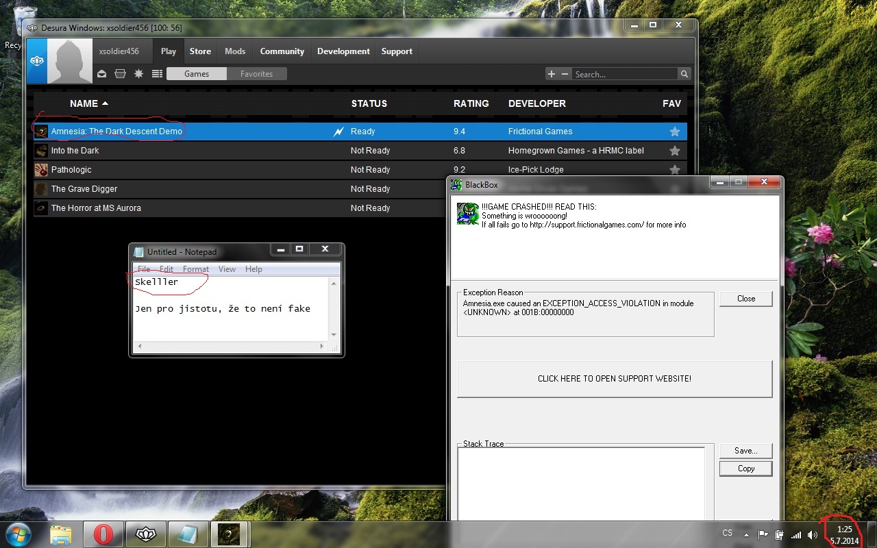 Originál to jasně není, když máš hru stejnou jako ten tazatel minule. Stejná chyba, Black box, stejná chyba... všechno.