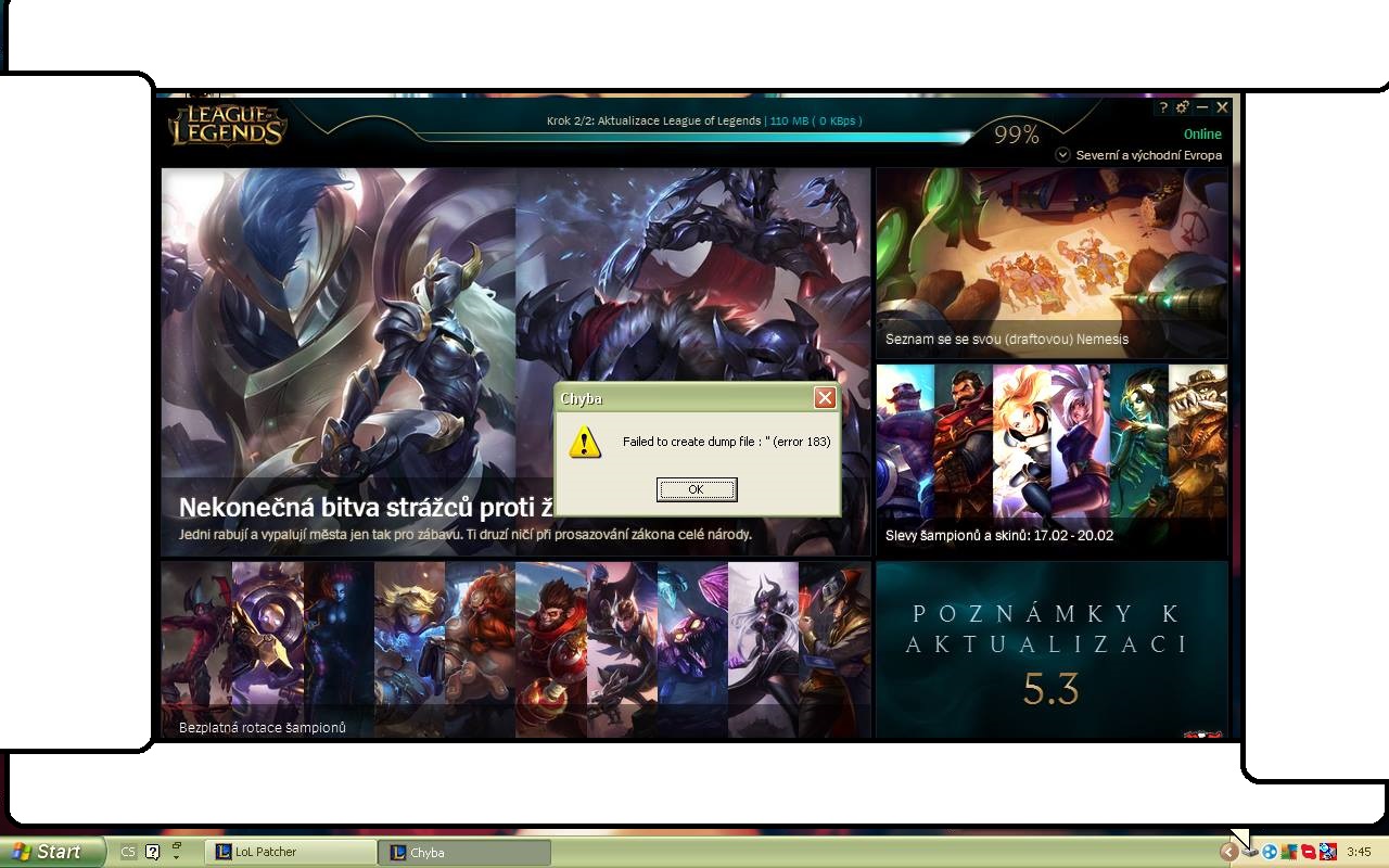 Ahoj, kamaradova chyba pri updatovani LoL ... Na netu jsem hledal jak to fixnout, ale nic kloudnyho jsem nenasel.