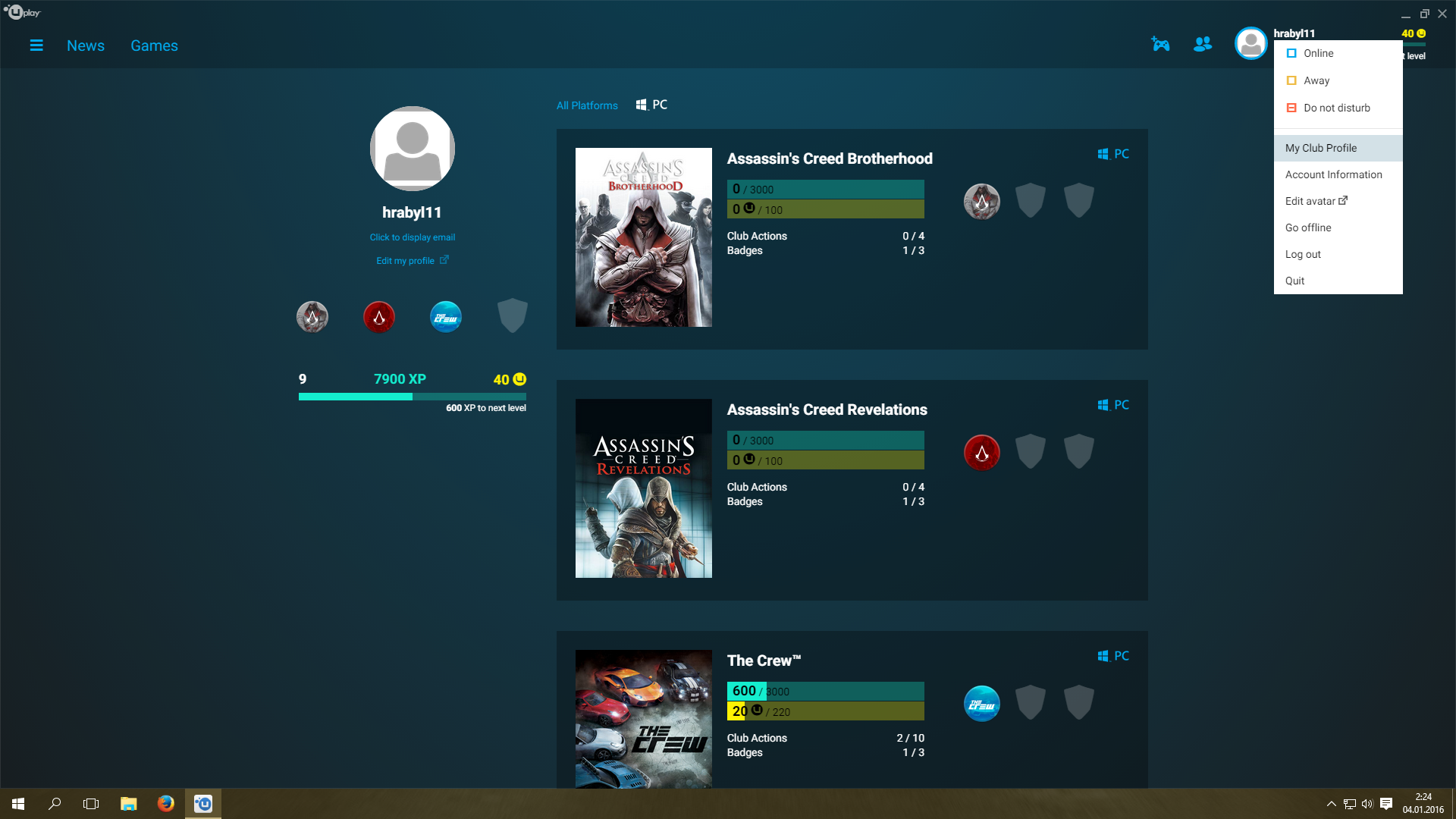 Na Uplay mám "prý" dvě hry Assassins creed Brotherhood a Assassins creed Revelations.
