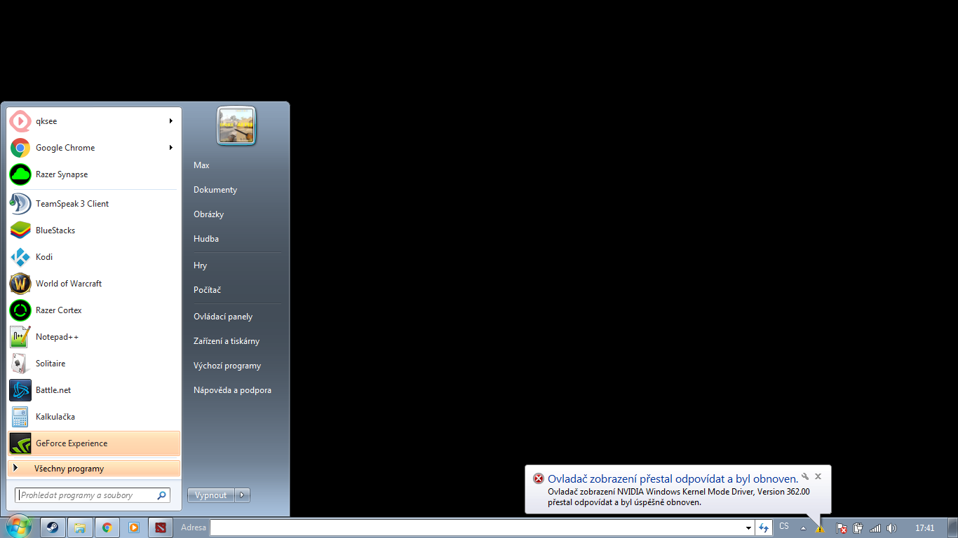 Měl bych tu jeden malý problém, viz předmět. Problem který se mi děje je ten, že když zapnu dotu, tak se dostanu do hlavní nabídky a asi za 5 sekund mi to hodí black screen, když mi to hodí black screen tak jdu na plochu a napíše mi to, že windows kernel přestal pracovat a že se ho podařilo obnovit. Tento problém se děje po každé, když zapnu dotu, u jiných her mi to neděla. Zkusil jsem hledat na internetu a žádný návod mi nepomohl. Zkusil jsem aktualizace driverů, stáhnutí starších driverů, v Regedit jsem zkusil udělat nový klíč v grafice, přeinstalovat dotu a už ani nevím, co všechno jsem udělal. Byl bych rád, kdyby se tu našla nějaká dobrá duše a pomohla mi vyřešit tento problém. :)