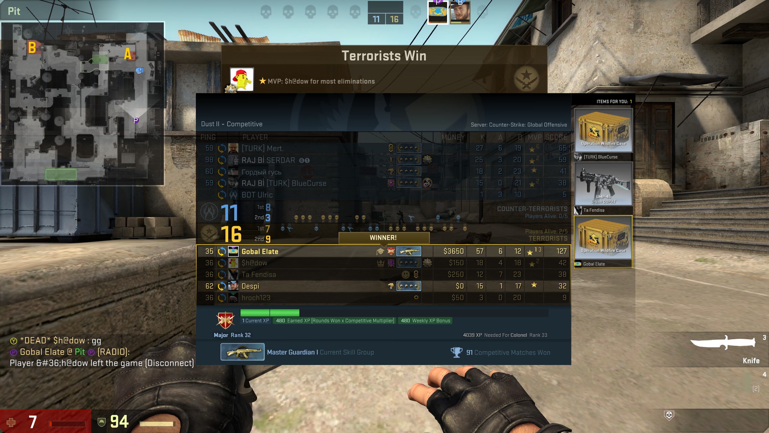 Tady si dovoluji přiložit jeden vyhraný zápas z cache (Oblíbená mapa, na dust už snad radši ani nechodím, tam je šance na rusáka v teamu dost vysoká :lol:)