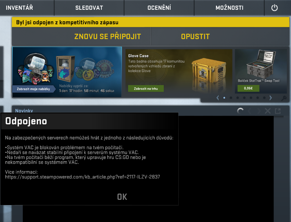 mám taký problém, už 2x sa mi stalo, že pri kompetetiv zápase ma to odpojilo a nešlo znovu pripojiť ukazovalo mi toto.