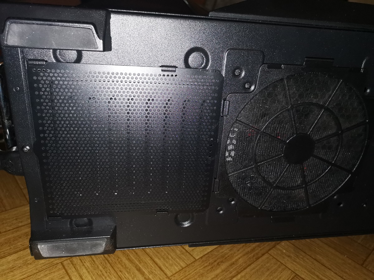 Pod tim zdrojem jsou průduchy nebo to je jenom promáčklej plech. Z tý fotky to pořádně nepoznam, ale vypadá to, že to neni průchozí.