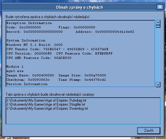Zdravim. Vlastnim originálku age of empires 3...už jsem to dříve hrál, normálně to šlo. Od té doby mam nový procesor, párkrát přeinstalovaný windows. Když hru spustim, úvodní videa dou. Potom začne muzika hry, je tam taková ta mince jak se točí (loading). No a tam to spadne a napíše chybu neodesílat. Neví někde co s tím, neměl někdo podobný problém? Díky