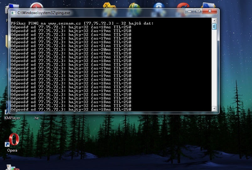 Dej Start -> Spustit -> zkopíruj tam toto "ping http://www.seznam.cz" onclick="window.open(this.href);return false; -n 100" a napiš jsem kolik ti to ukazuje "čas= ms"
