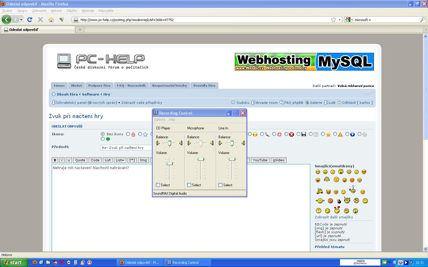 Re: Zvuk při natčení hry