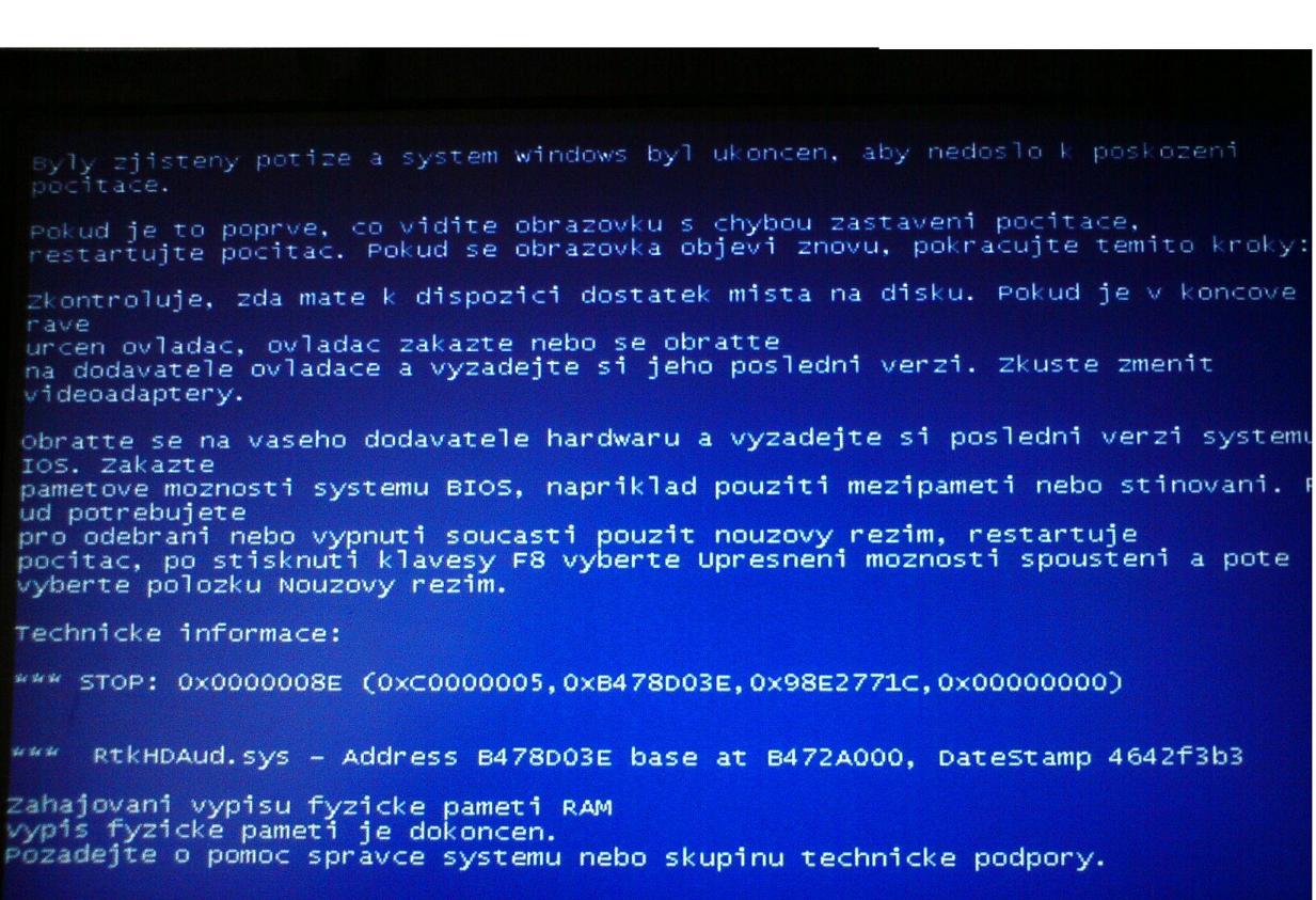 Pokud máš Windows XP postupuj takto: Pravým tlačítkem klikni na Tento počítač a z nabídky vyber Vlastnosti,poté vyber na kartě Upřesnit,úplně dole je Spuštění a zotavení systému,tam zvol Nastavení a odškrtni Automaticky restartovat,poté potvrď OK.Až se ti opět objeví BSOD,tak sem hoď screen.