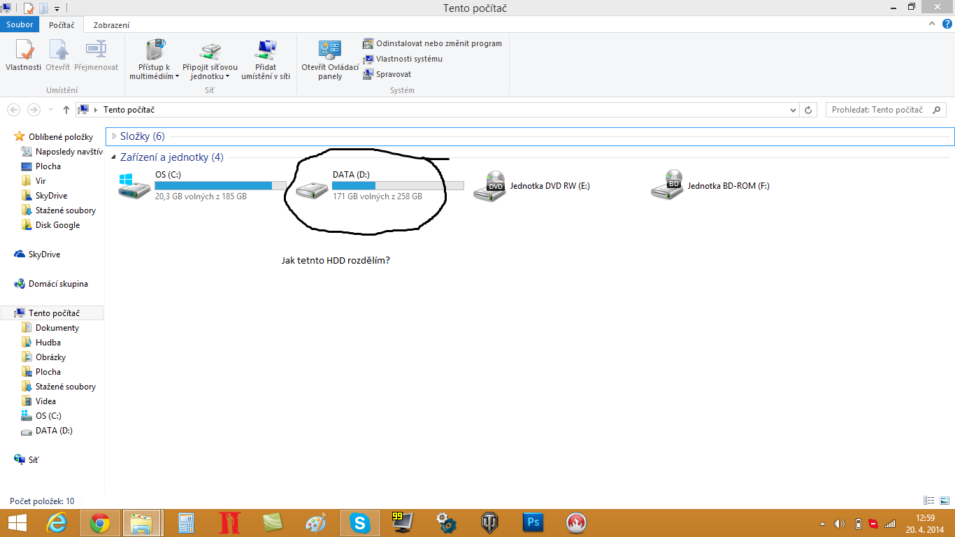 Dobrý den,chtěl jsem se zeptat jestli někdo neví jak rozdělím HDD.Viz foto