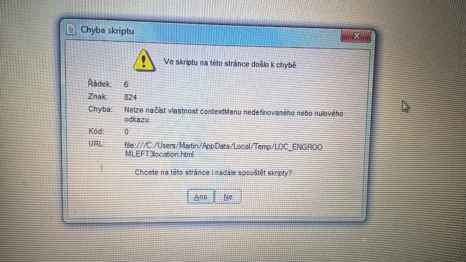 Jeden program, ve kterém jsou v interaktivní formě podávány informace o autech - zobrazují se různé obrázky atd... Neustále vyhazuje hlášku viz příloha. Vygooglovat jsem řešení, že mám v Internet Exploreru zakázat ladění skriptů. To jsem udělal, ale nepomohlo to. Program vlastně ani nic v IE nespouští, takže to by asi ani nemělo pomoci.