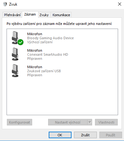 Ne u všeho je ten samý problém. Stalo se to následovně. Přeinstaloval jsem ovladače protože mi nefungoval nový mikrofon. Potom se stalo tohle. Ještě větší blbost je že ve zvuku nemůžu ani nastavovat výchozí zařízení.