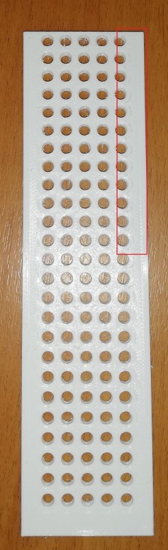 Nevím zda to lze poznat, ale vypadá to, jako by se tiskárna při tisku poslední vrstvy vykašlala na jeden úsek výtisku a zanechává to stopu bez filamentu.