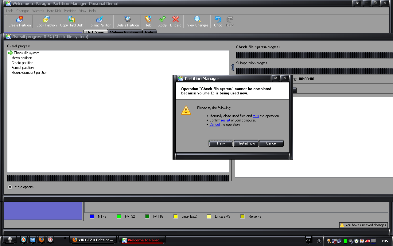 Potřeboval bych hdd rozdělit na 2 oddíly kvůli instalaci win 7, ale když to vše nastavím jak má být a dám apply, hodí mi to chybu: