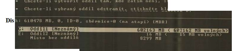 disk re rozdelenej na oddíl 1 602163 MB (602162 MB volných)