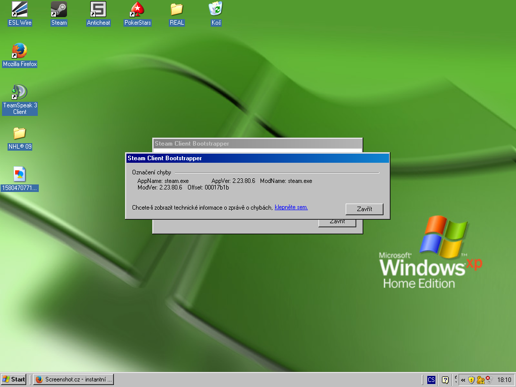 najela mi tahle hláška (viz příloha),když jsem aktualizoval steam...(mám Windows XP).Zkoušel jsem restart pc,reinstall .....