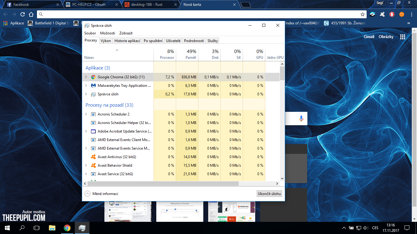 Zdravím, mám nepříjemný problém, poslední dobou se mi google začal sekat nebo prostě začal být zpomalený, když sem kouknul do správce úloh tak mi chrome bral tak 300Mb paměti (ukazovalo 30%), myslel sem že už mám bordel v počítači, tak sem udělal kompletně na čisto reinstal windowsu 10. Počítač běží plynule a bez problému, nicméně při nainstalování chromu mi opět bere příliš hodně RAM paměti, kde může být chyba ? Za jakoukoliv radu děkuji.