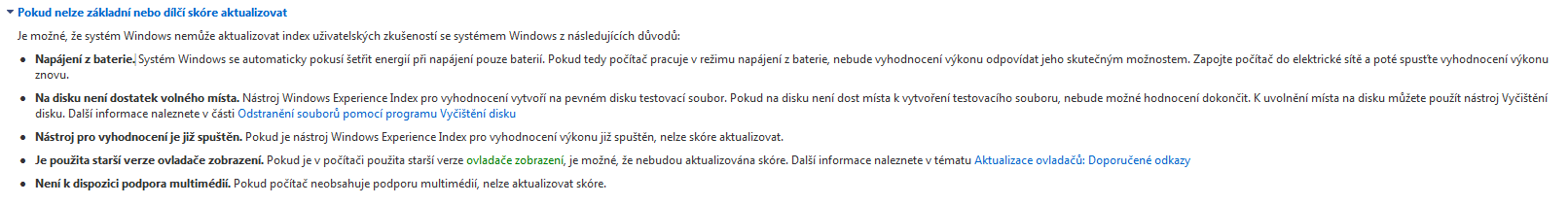 Když jsem chtěl zjistit hodnocení výkonu mého notebooku, tak vyskočí hláška: "nelze změřit výkon procesoru". Jde o nový notebook, kde ještě nebylo vyhodnocení zjištěno.