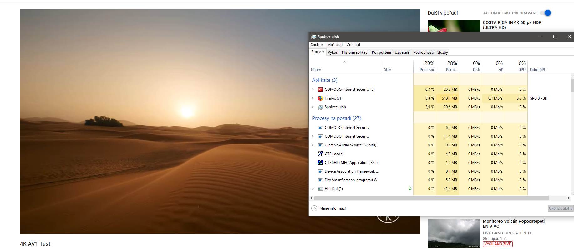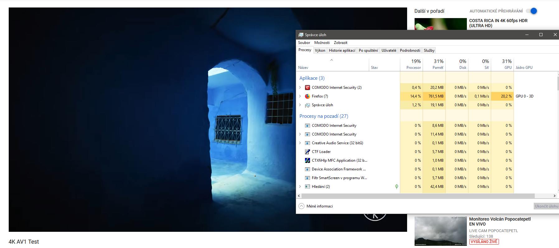 Pokud vypomaha grafika, tak se to same video prehrava v H264 a ne v AV1.